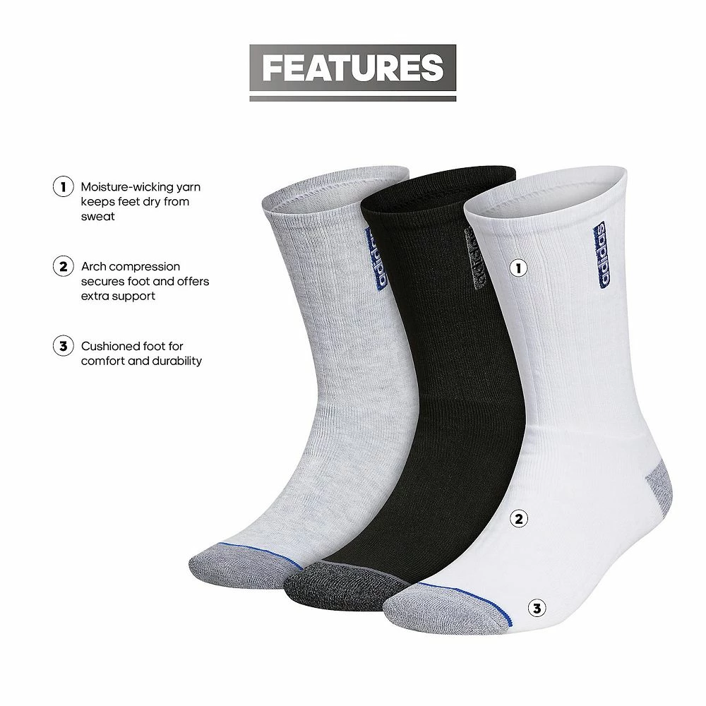 Step into cool comfort and stellar style with these men’s adidas crew socks.