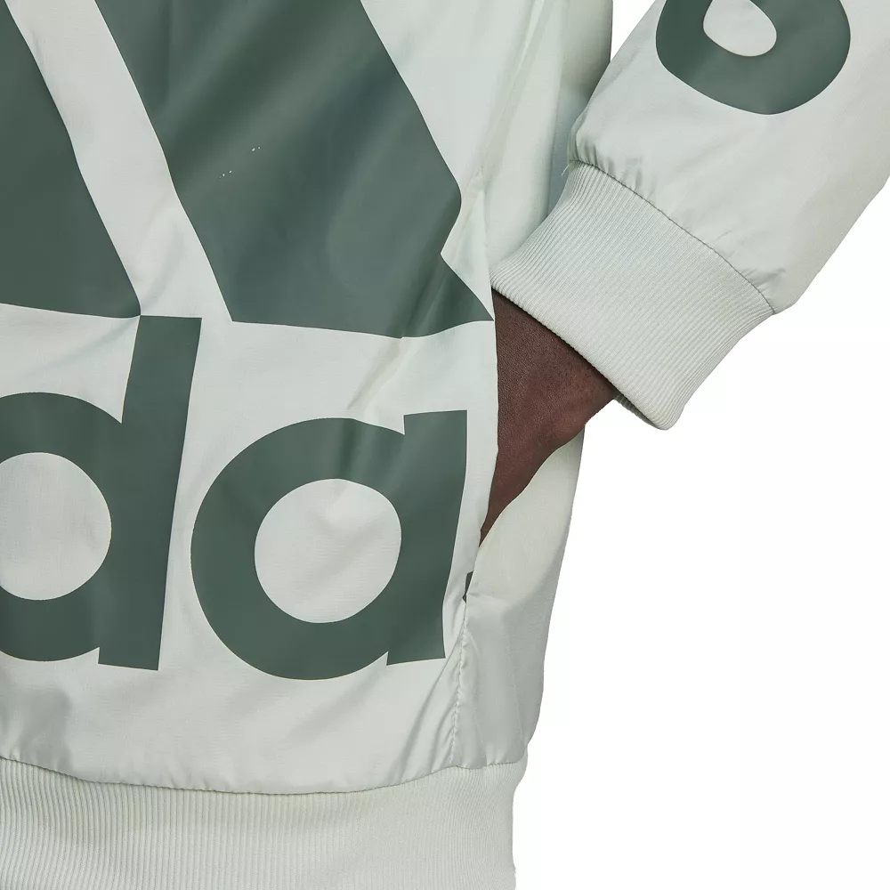 Make an impact. From your first step onto the pitch or into the gym, this men’s adidas windbreaker lets its giant adidas Badge of Sport do the talking.