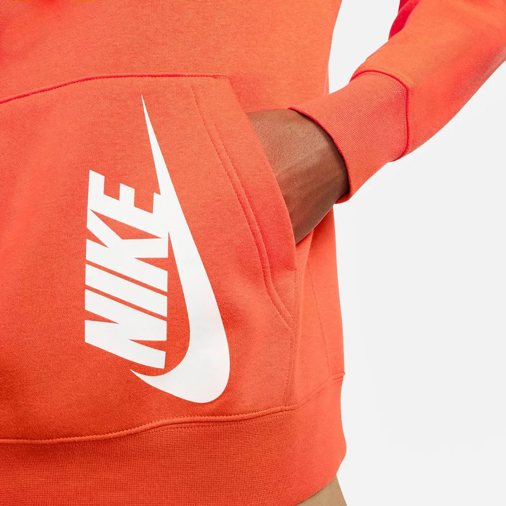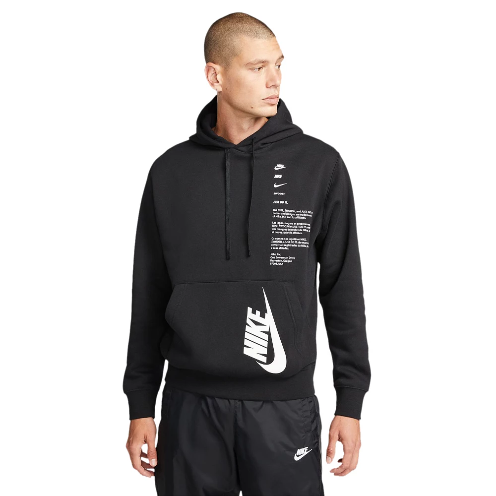 Pull on the soft warmth of this brushed-back French-Terry Nike Club+ men’s hoodie and experience the smooth, easy comfort of a classic. The printed graphics are inspired by Nike shoeboxes, so pair it up with your favorite sneakers and celebrate the Swoosh.